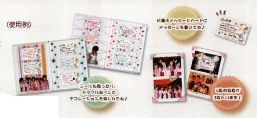 | 店長による商品解説 | メッセージカードをみんなに配って寄せ書きできます。大勢でも時間をかけずに寄せ書きでき、便利です。 1ページあたり、3枚のメッセージカード(名刺サイズ)を貼ることができます。 最高30枚まで貼れます。20枚は付属しているので、それ以上必要である場合には、別売りのメッセージカード「MC-11166」をお買い求め下さい。 また、1ページにはL判の写真が2枚貼れます。 |