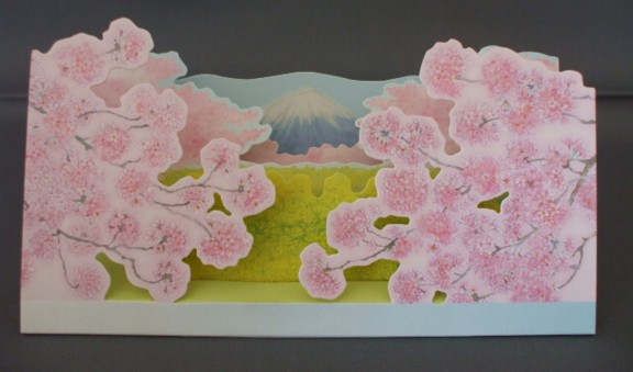 春の富士山を表現した立てて飾れる多目的カードです。